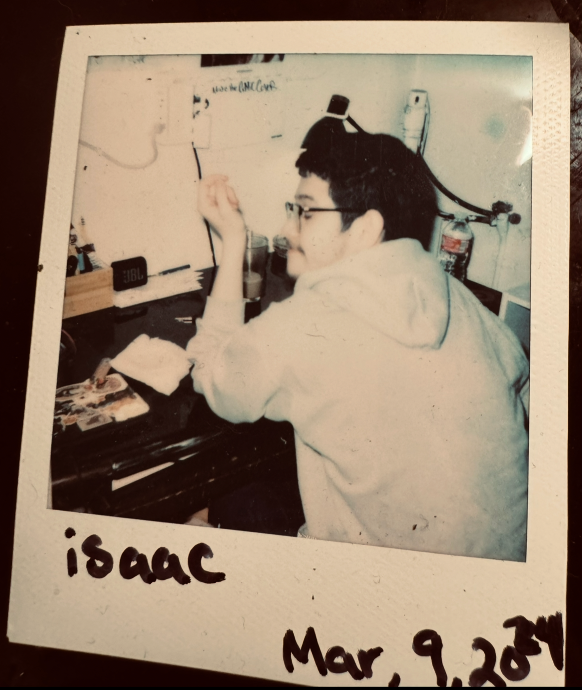 Isaac Cuevas is a 21-year-old Mexican American artist and first-generation creative whose work reflects the duality of his upbringing bold, expressive, and unapologetically rooted in culture. Born and raised in the U.S. with deep ties to his Mexican heritage, Isaac creates artwork that blends streetwear aesthetics with cultural storytelling.His artistic style ranges from chaotic and abstract to clean and minimal, Isaac is the founder of Xochi, a clothing brand born from both necessity and vision.